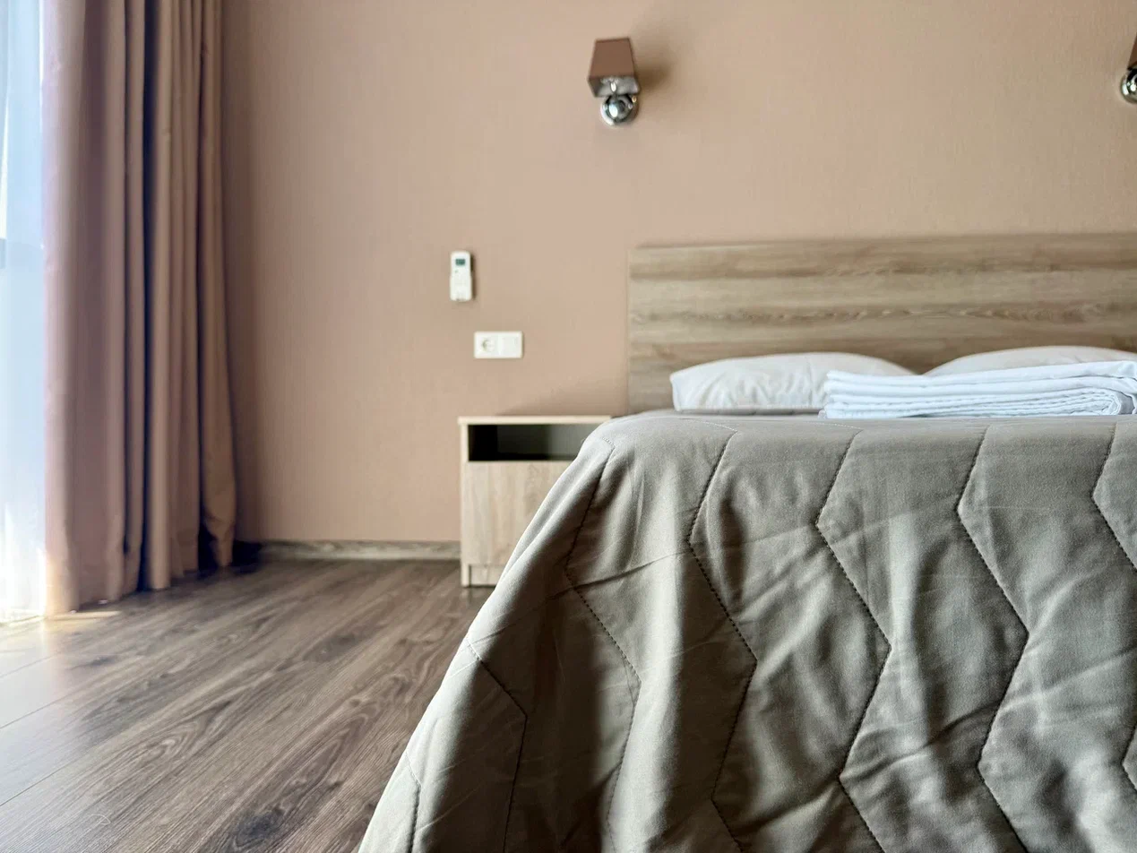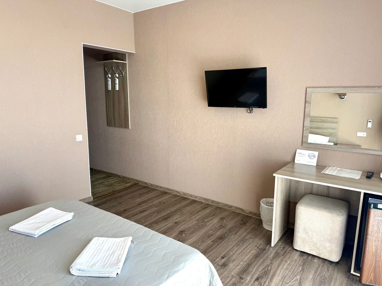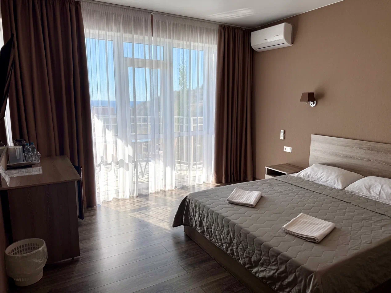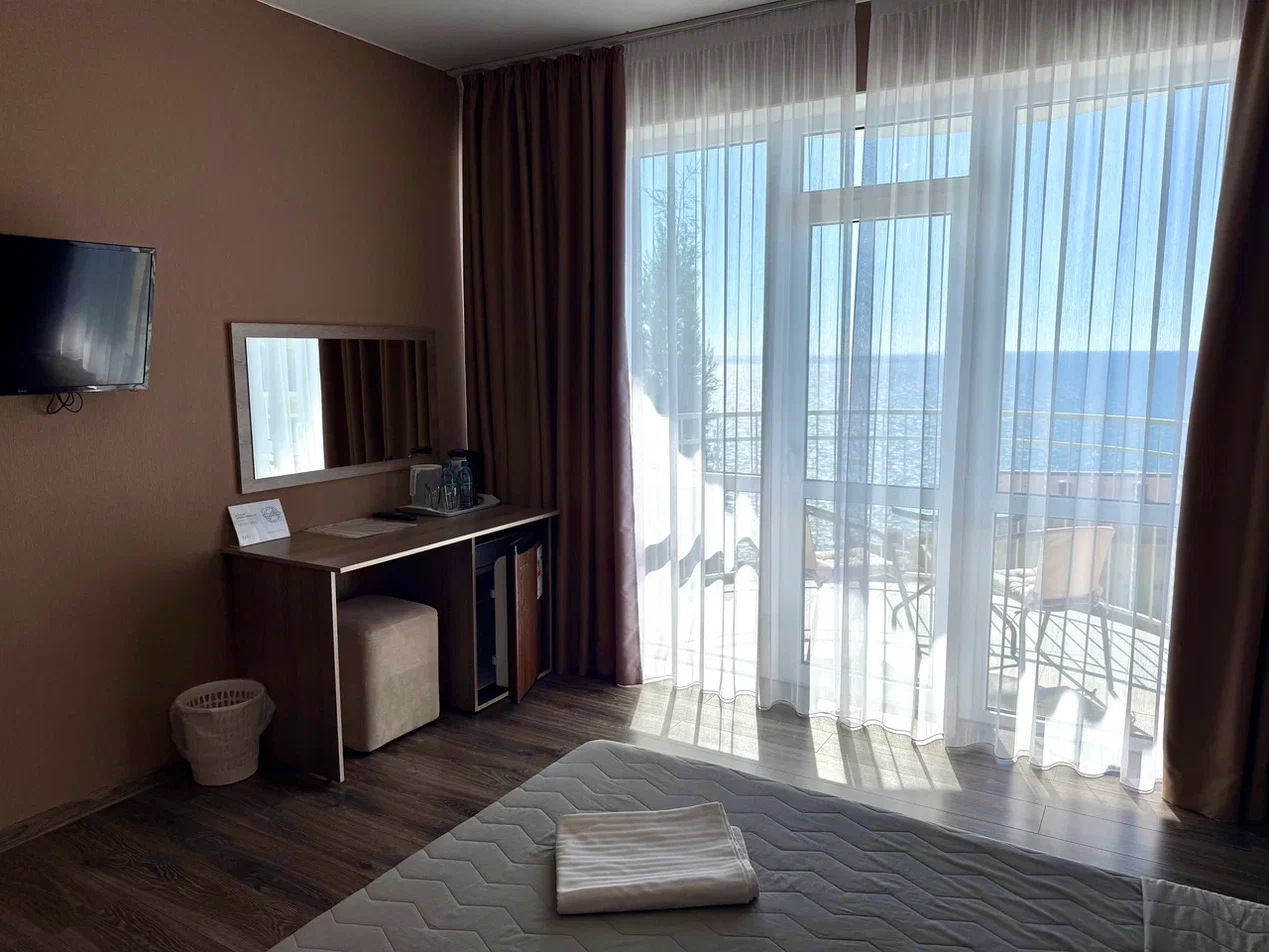 Комфортабельный двухместный номер категории "Стандарт" с панорамным видом на Черное море. Расположен на третьем этаже, откуда открывается великолепный морской пейзаж. Идеальный выбор для романтического отдыха или спокойного времяпрепровождения вдвоем.